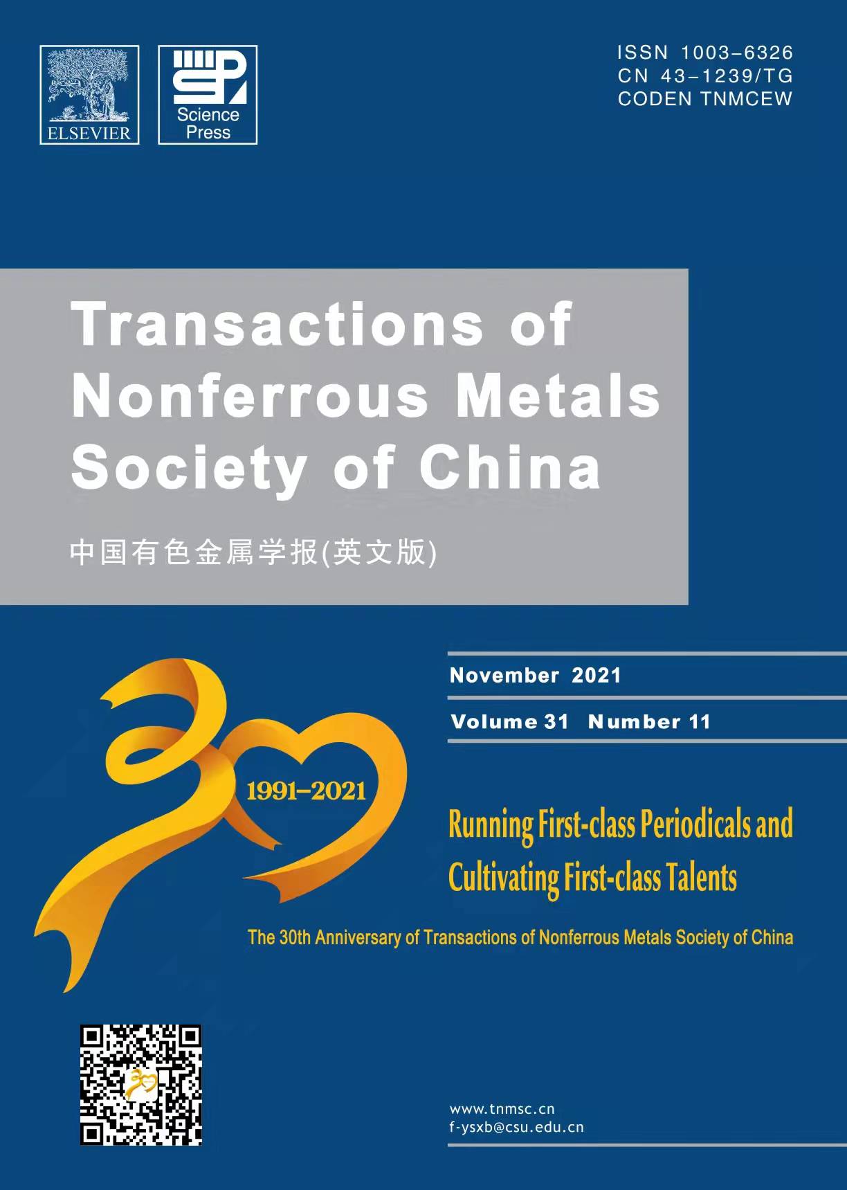 中國(guó)有色金屬學(xué)報(bào)(英文版)